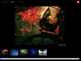 その時点で表示された一番最初の画像は、まだ静止状態で次の画像と入れ替わりません。それをコントロールするのが右上の4つのボタンです。左端のボタンで前の画像を表示、2番目のボタンでスライドショーをスタート、3番目のボタンで次の画像を表示、右端のボタンでスライドショーを閉じて図@のウィンドウに戻れます。また、画面の左上を見ると4つのコントロール・ボタンとは別のメニューがあり、その内容は「Slide Show」、「Filmstrip」、「Previews」の3つですが、「Slide Show」の状態である図Aからは他の2者しか選択できません。